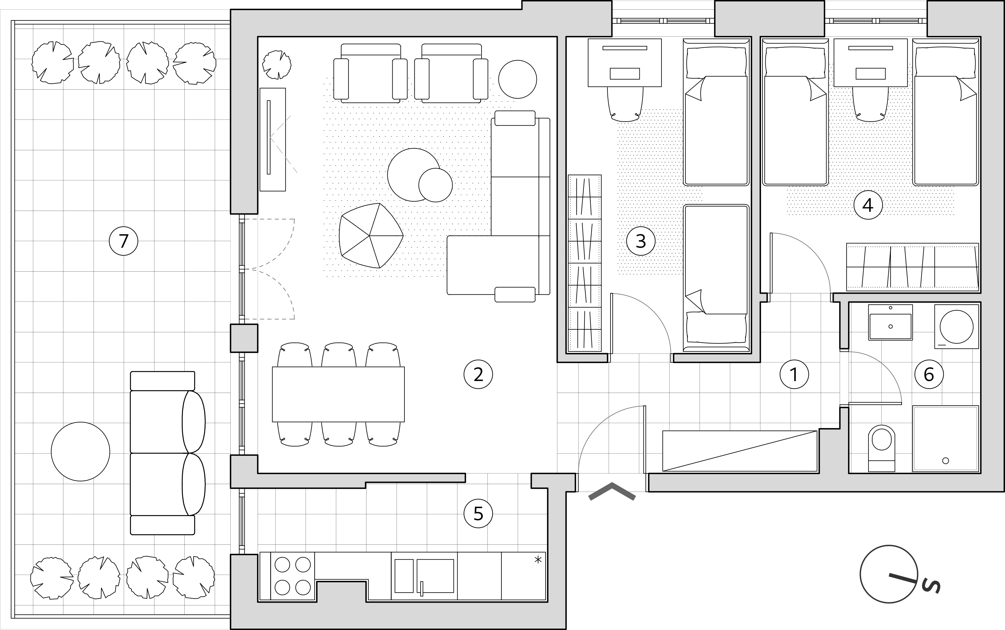 dnevnog boravka, kuhinje i trpezarije vizuelno dodatno proširuje zapadna terasa.